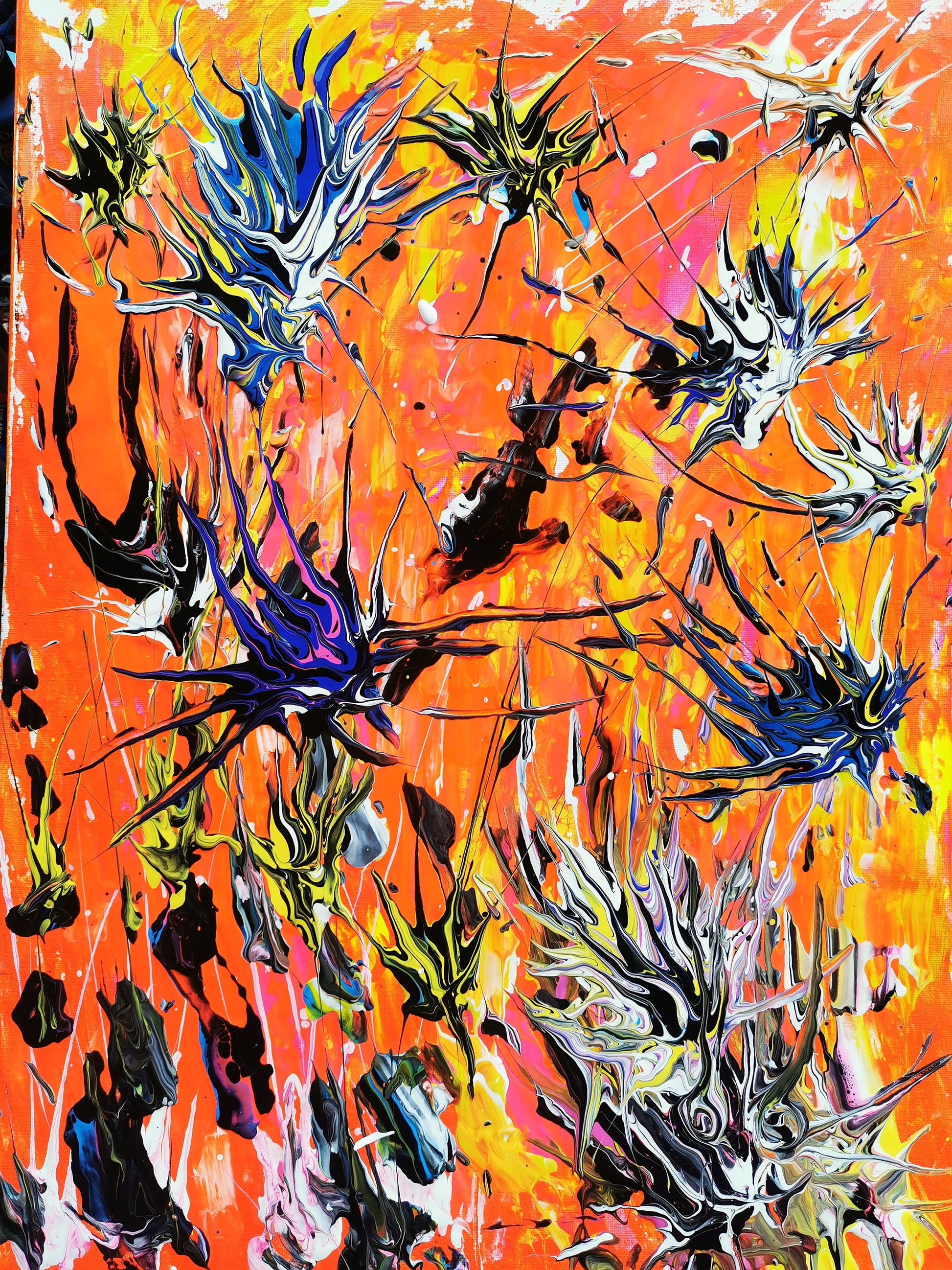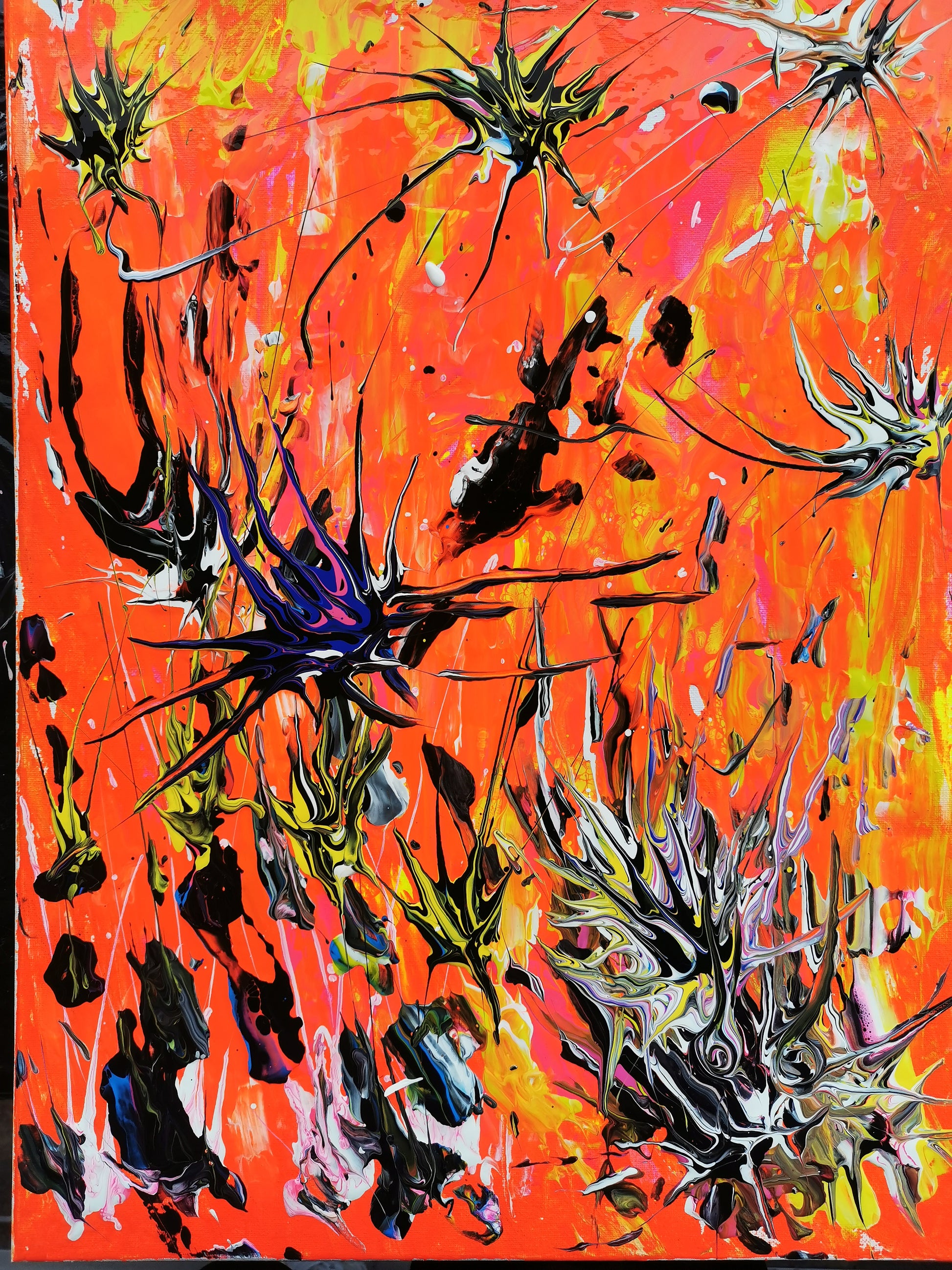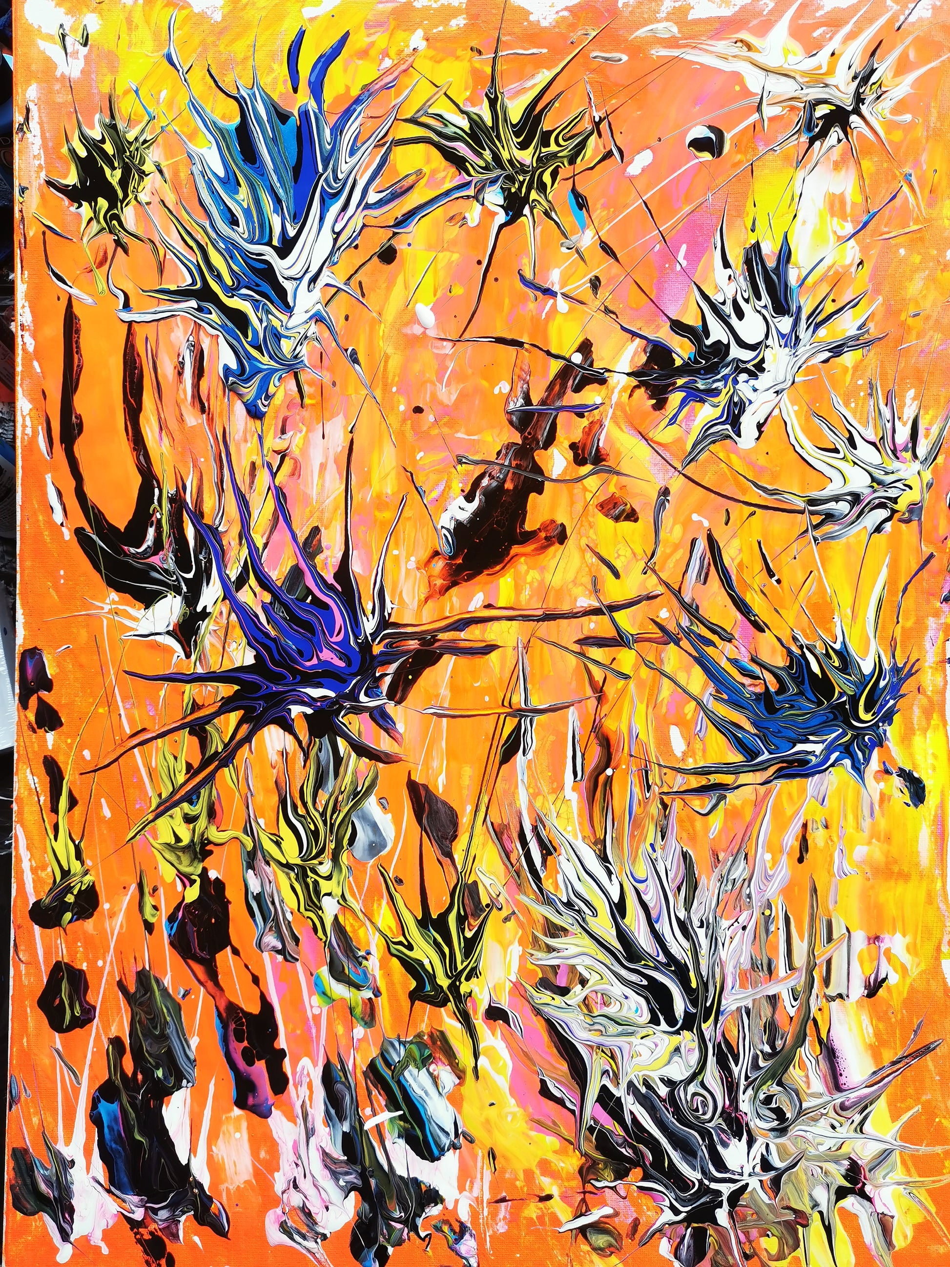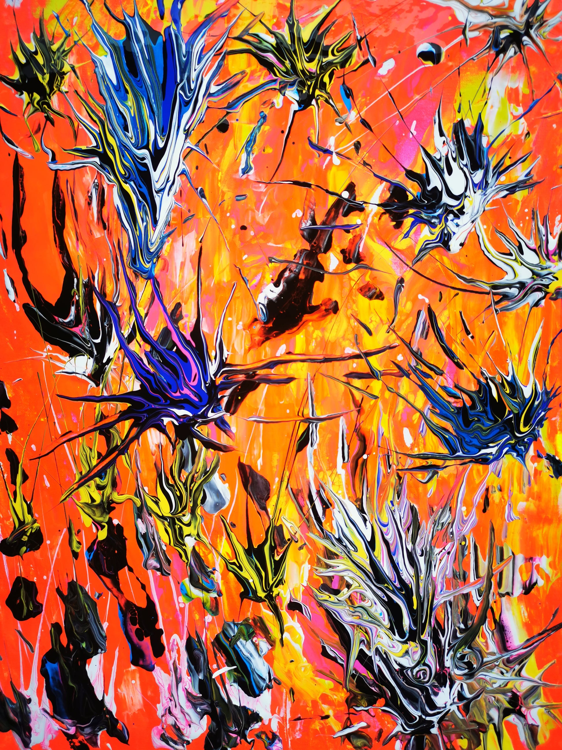 This artwork is named "Urchins" to draw attention to the natural beauty and complexity of these forms, inviting viewers to explore and appreciate their intricate details. The piece serves as both a visual tribute to the creatures themselves and an exploration of color’s power to convey depth and character in art. Through deliberate layering and contrast, the canvas captures the delicate balance between fragility and resilience found in these creatures.
